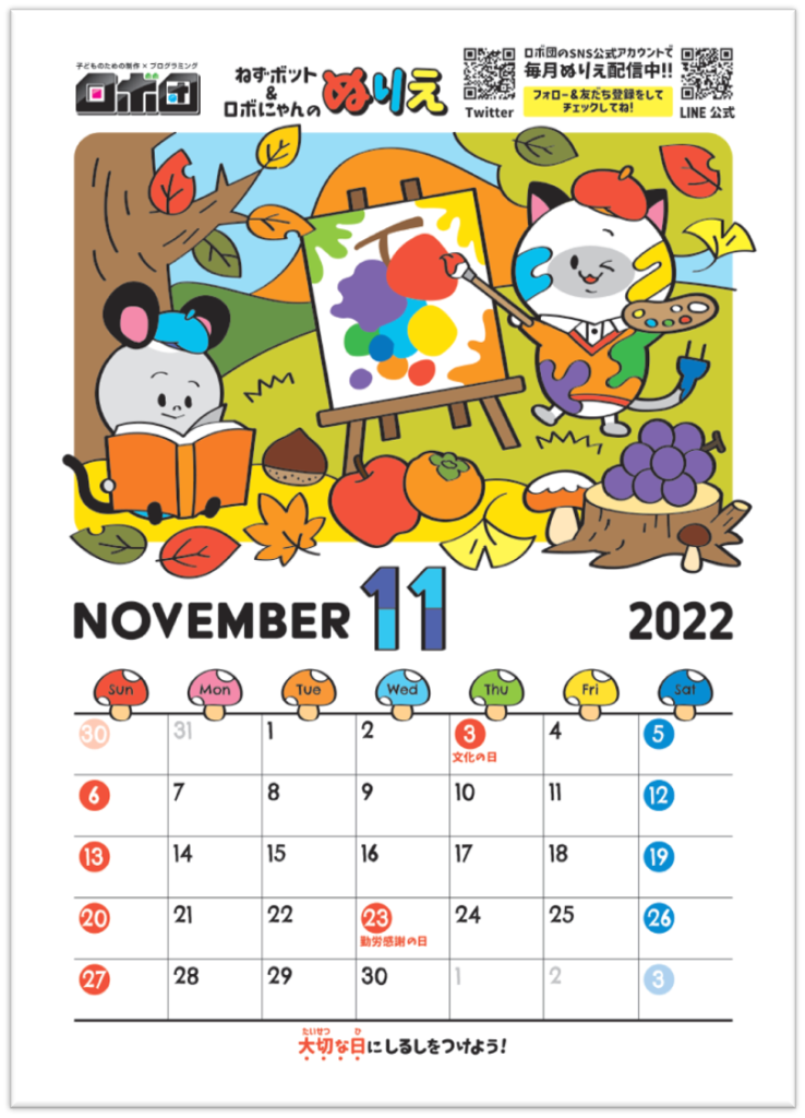 ロボ団 ねずボット&ロボにゃんのぬりえ (11がつぶん)